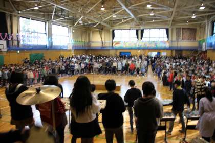 字幕を観ながら一生懸命に歌う下級生たちのために、クオリティの高い演奏を披露!