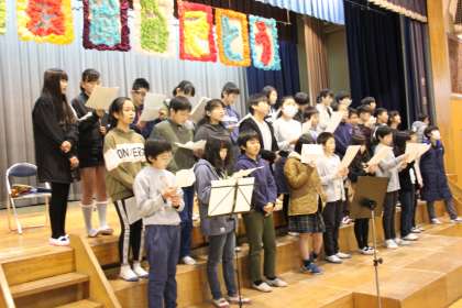 土曜日の6年生を送る会で大活躍を見せた6年生が、体育館で更なる練習をしています。