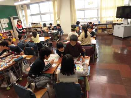 昔遊びでカルタとりをしました。