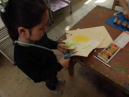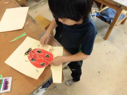 春の季節に咲く花や虫の絵を図鑑で調べながら、作成しました。好きな花や虫の特徴をよく捉え、友達の作品を見合いながら楽しく活動しました。