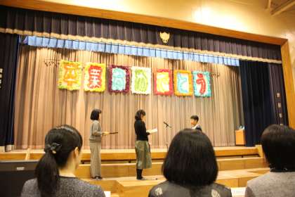卒業記念品の贈呈や、保護者からのお祝いの品などの授受が続きます。