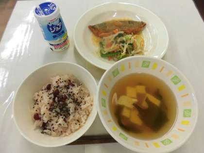 【献立】赤飯・さばの煮おろし・おひたし・すまし汁・のむヨーグルト