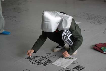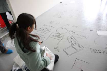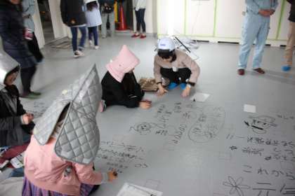職員室と校長室の床には、6年生のメッセージがいっぱい!