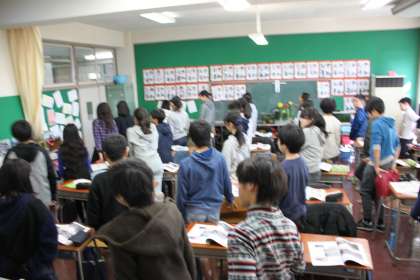14時46分に合わせて、全校で授業を中止し黙祷を行いました。