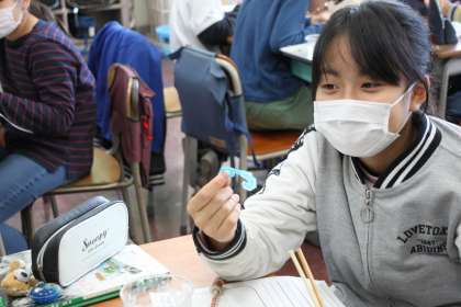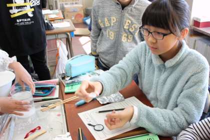 5年生が理科の時間に、ミョウバンの結晶を育てました。