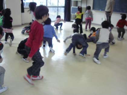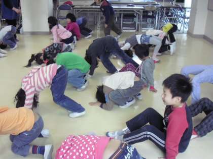 「だるまさんがころんだ」から「えんぴつ」「給食」などの変身ゲームをしたり、