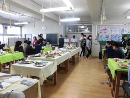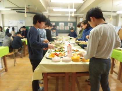 卒業間近の6年生を対象に、バイキング給食を実施しました。会場は家庭科室です。