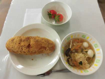 【献立】あげパン・肉団子入り春雨スープ・いちご・牛乳