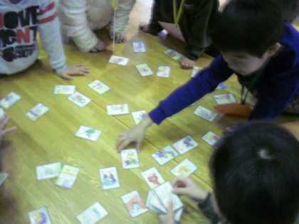1年生はカードをもって、それぞれのコーナーをまわりました。