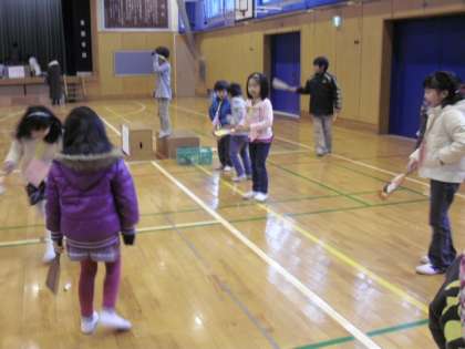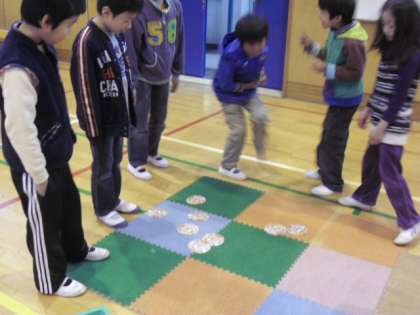 1年生と2年生で「むかしあそびをしよう集会」をしました。