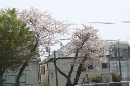 校庭のサクラの木も、新入生のために散らずに待っていました。