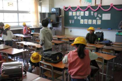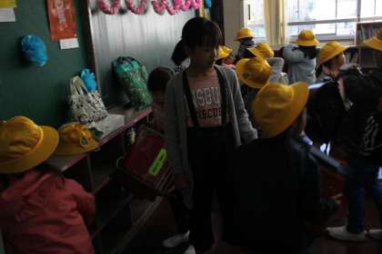 6年生が1年生のお手伝いの活動を始めています。