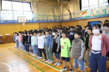 朝から元気いっぱいの歌声を体育館に響かせます。