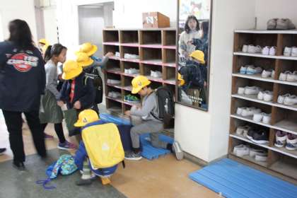 上履きもきちんと持ちかえり、コースごとに整列!