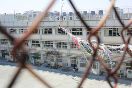 地域の方、PTAの皆様が来校され、今年も大量のこいのぼりを掲揚です!
