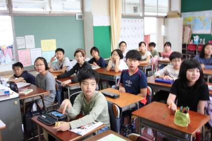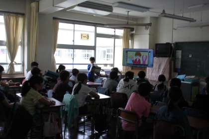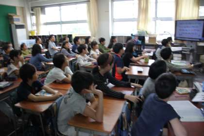 教材のビデオを中心にした活動ですが、子どもたちの元気いっぱいの声が教室内に響きます。