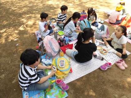 楽しみにしていたお弁当の時間になり、みんなで円くなって食べました。普段とは異なる場所や仲間と食べるお弁当は、格別だったようです。保護者の皆様、ありがとうございました。