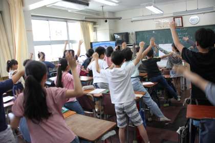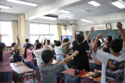 ビデオ教材を中心とした活用ですが、ただ見るだけではなく、クラスごとのアレンジでハイテンションなアクティビティもあります。
