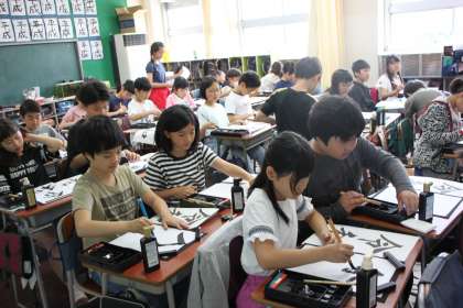 筆運びもしっかりとしていて、お手本を見ながらじっくりと創作に取り組みます。