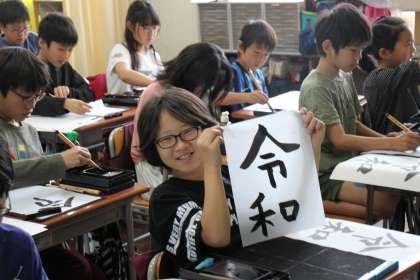 自分の作品で、ちょっとした官房長官気分を味わう5年生たちでした。