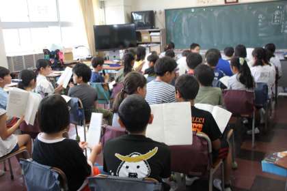 5年生が川場移動教室に向けて、バスレクの練習をしました。