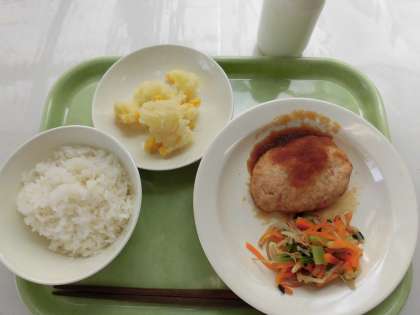 ごはん 豆腐入りハンバーグ おひたし コーンポテト 牛乳