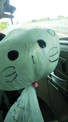 5年生、お手製のジャンボてるてる坊主は効果覿面?