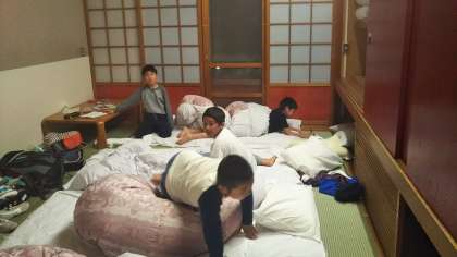消灯時刻が迫っても興奮冷めやらぬ5年生たち。