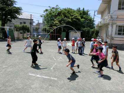 中休みに3、4、6年生が長なわの練習に取り組みました。