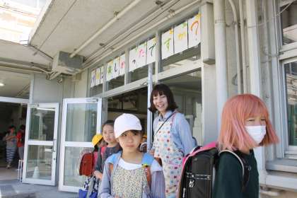 朝会の後で感謝の気持ちを伝えた5年生。