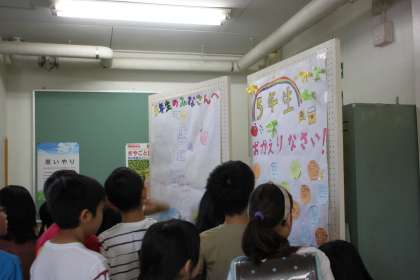 昨日まで川場移動教室に行っていた5年生のために、6年生が「おかえりメッセージ」を書いてくれていました。