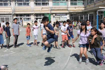 子どもたちのやる気があふれる校庭で、「ハイ!ハイ!」という声が響きました。