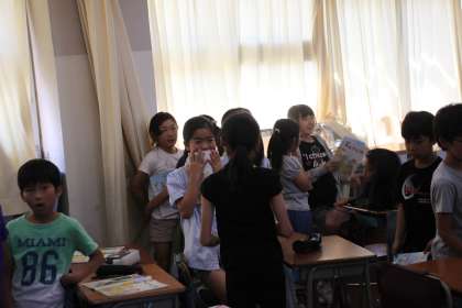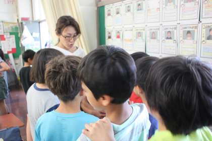ALTのジョージ先生をお招きして、4年生が外国語活動の学習をしています。