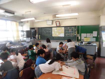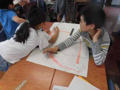 自分たちが住む、この若林の町内を探検し、その振り返りとしてマップ作りに励んでいます。グループで協力しながら、徐々に完成に近づいています。