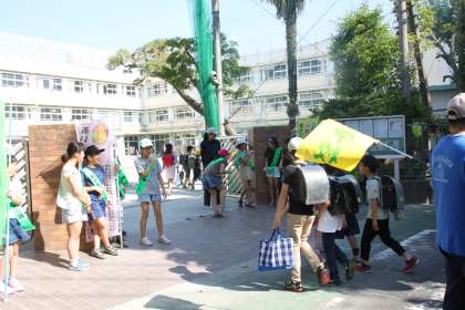 学年別あいさつ運動に、川場移動教室から戻った5年生が参戦!