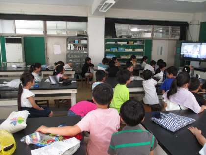 みんなで静かに歯磨きの大切さについての講義を聴いた後、