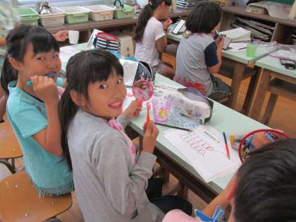 校医さんを講師にお招きして、4年生が歯磨き指導を受講しました。
