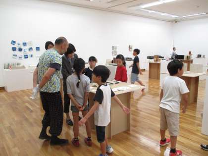 学芸員さんに説明を受けながら、作品の見方を教わります。