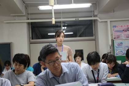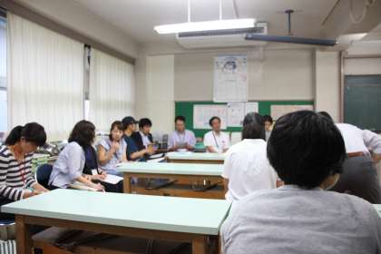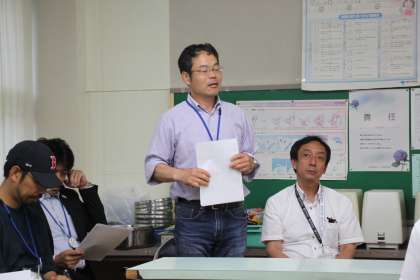 会長を始め、役員の皆さんと会員の皆さんが家庭科室に集合。