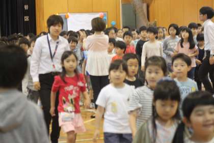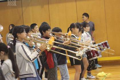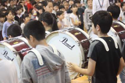 6年生の鼓笛隊が、朝会の退場を爽やかに演出しました。