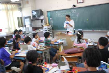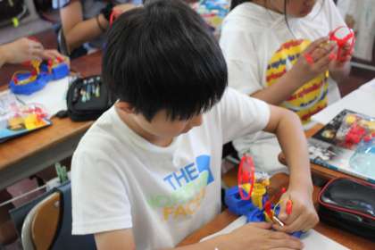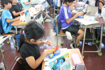 4年生が理科の実験でモーターを使った風車をつくりました。