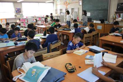 授業時間中も休み時間中も、学校図書館は大人気です!