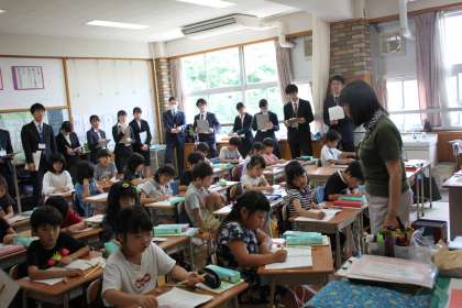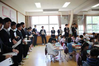 今日は文学部の学生さんたちが多数、若小の学習の様子を見学しに来ました。