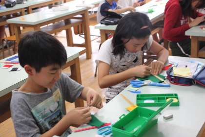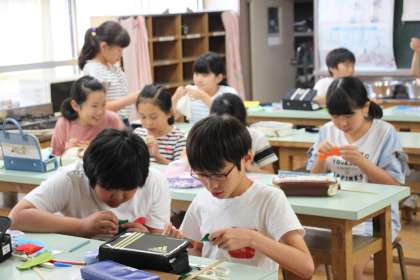 5年生は家庭科で裁縫道具を使ってものづくりを行っています。