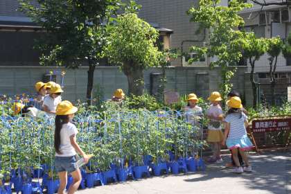 かわいい1年生たちは、更に成長させるべくお水をあげています。
