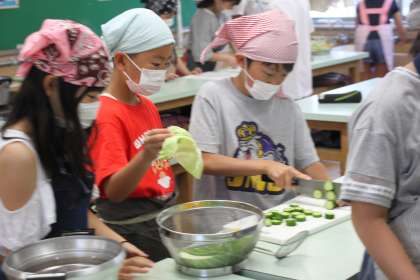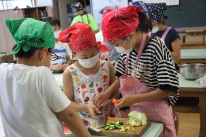 皮をむいたり、切ったりして、食べやすいサイズに切りそろえ、茹でます。