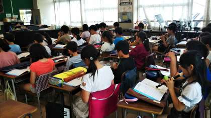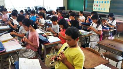 5年生が音楽の時間にリコーダーの演奏を行っています。