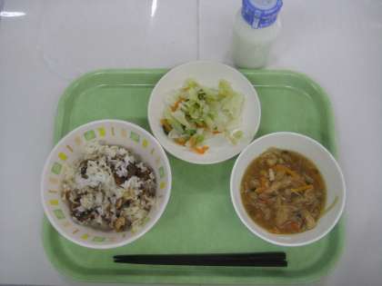 さんまごはん 野菜の甘酢かけ 切干大根のみそしる 牛乳