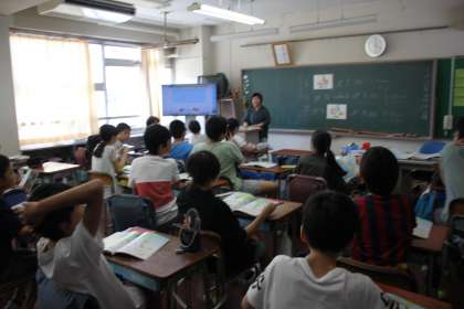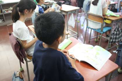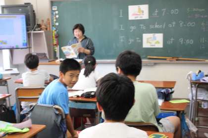 6年生は外国語活動の時間に、一日の生活を英語で表現しました。