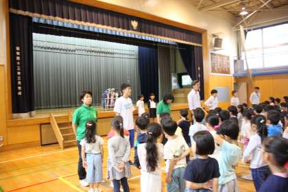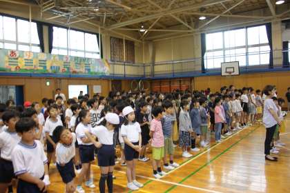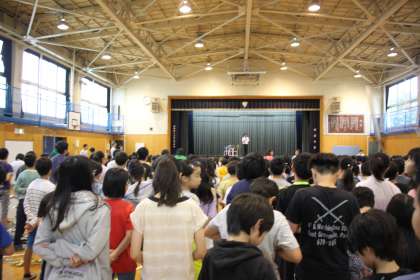 子どもたちも元気に登校し、全校児童が体育館に集結!